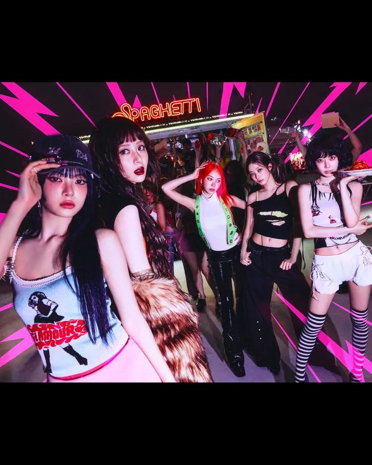 24日下午1点(韩国时间),LE SSERAFIM官方SNS发布了一条简短的信息"CHEEKY NEON PEPPER?️",并公开了成员们身穿多彩服装的照片。成员们染着橙色头发,佩戴各种配饰,面带活泼表情,指向意大利面和饮料,在灯光绚丽的室内空间摆出姿势。搭配露脐上衣、裤子和紧身裤,以及穿着毛皮外套,展现出个性十足的氛围,吸引了众人目光。