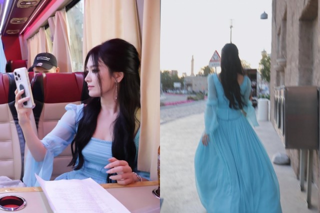 演员宋慧乔公开了她在Netflix系列剧《一切都会实现》的特别出演幕后故事。宋慧乔于12日在自己的Instagram上发布了多张照片,并配文"只有背影"。公开的照片中,宋慧乔在迪拜拍摄的场景被展现出来。她完美驾驭华丽的服装,以烟熏妆展现出独特的美貌。