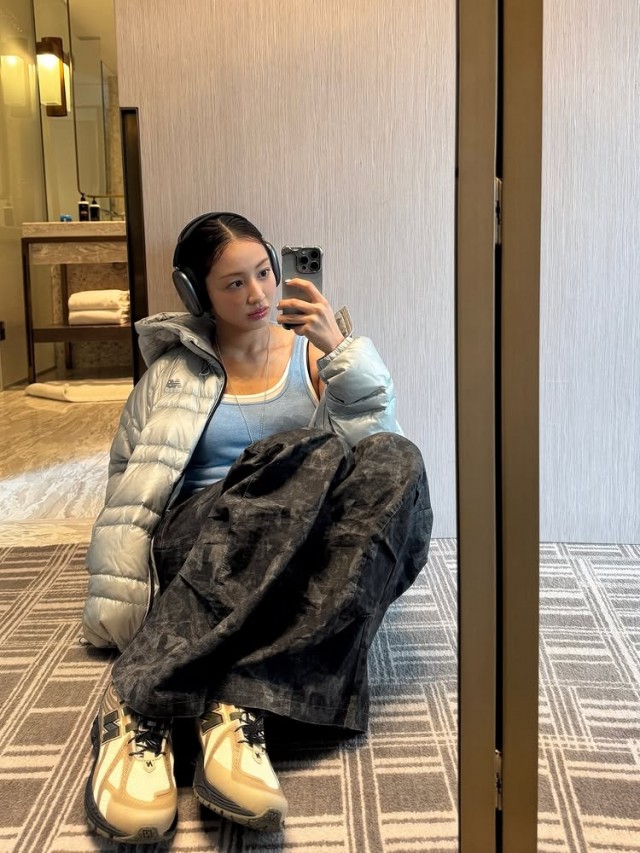 志效在帖子中简短写道"好冷好冷"(好冷好冷)并附上#广告 #飞77鹅绒 #轻质衬垫标签,自然地介绍了这款本冬季备受关注的羽绒服单品。粉丝们对她亲切的日常和感性的造型表现出极大关注和支持。