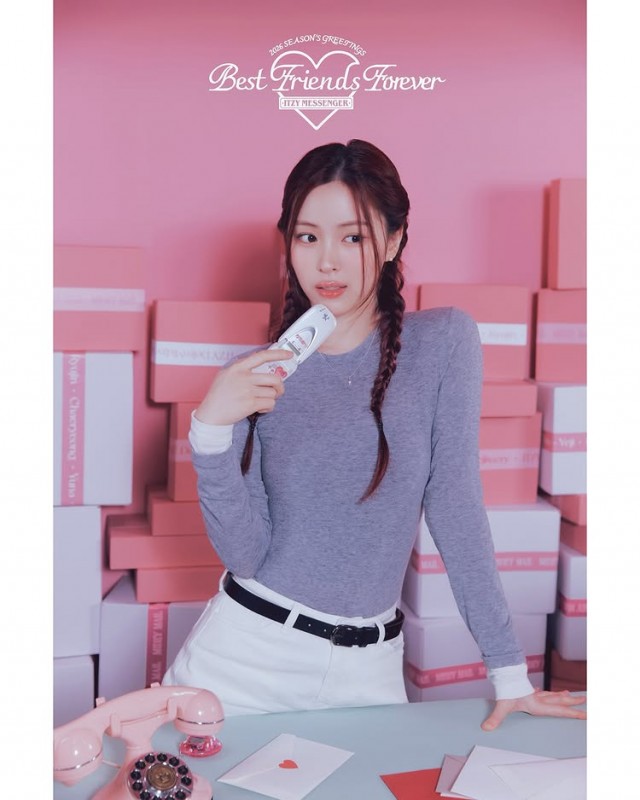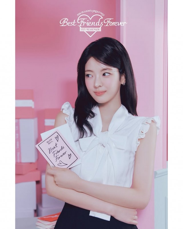通过ITZY官方SNS公开的本次季节问候中,成员们携带粉色盒子和茶点套装等精致小道具,以多样的形象亮相,吸引了众多目光。成员们穿着干净利落的衬衫和背心、连衣裙、毛衣等多种风格,展现出各自不同的氛围和丰富的视觉效果。特别是黑色背心配白衬衫戴眼镜的造型、微笑着手持书本的样子、倚靠桌子与各种小道具合影的画面,展现了季节问候丰富多彩的概念。