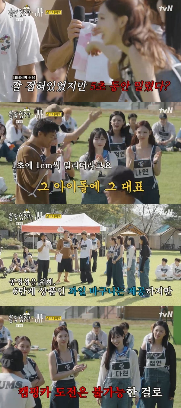 第四阶段Stray Kids和Kickflip最先被淘汰,第五阶段所有队伍全部出局。最终剩下的是体型较小的TWICE和DAY6。纳PD尴尬地说:"其实露营车是开玩笑说的,这不可能。"检查TWICE折叠的布包时,再次确认布包未正确折叠。朴振英支持TWICE说:"看这布包是不是被挤了5秒,每秒挤1厘米。"