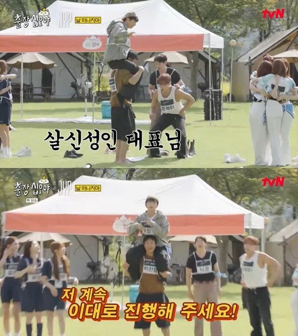10月22日首播的tvN《十五晚的商务旅行 X JYP 侦察》第1集中,朴振英和多位JYP所属艺人进行了"别离开我"游戏。该游戏是在不断折叠变小的包袱布上,4名队员必须全部坚持下去的方式进行。