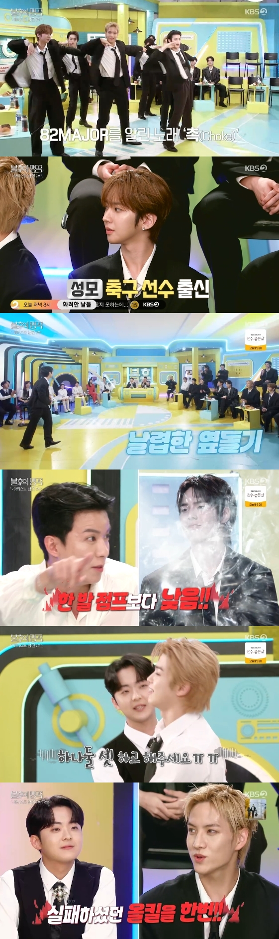 组合82MAJOR在KBS 2TV综艺节目《不朽的名曲》中展现了出色的竞争欲望。25日播出的该节目以"艺术家南珍"第二部为主题,杨东根、Dickpunks、金基泰、罗泰柱、全有珍、82MAJOR等共6组团队进行了比赛。