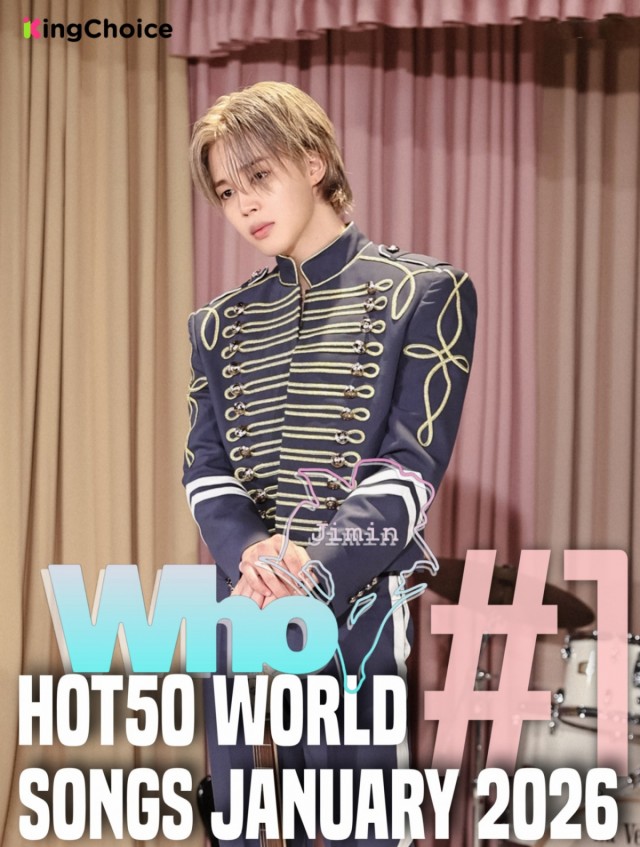 防弹少年团(BTS) 智旻的《Who》获得了第十五次世界歌曲榜冠军。智旻的第二张个人专辑《MUSE》主打歌《Who》在1月1日至1月31日期间举行的全球K-pop粉丝投票网站King Choice的"2026年1月世界歌曲热50"(HOT 50 WORLD SONGS JULY 2025)中排名第一。