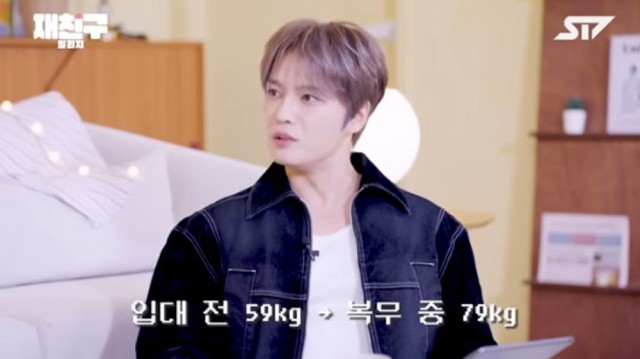 歌手兼演员金在中提到了服兵役期间体重增加的情况。5日,在在线频道"重交"上传的视频中,金在中在与黄旼炫的对话中透露,服兵役时体重增加了20公斤。他说:"入伍前是59公斤,服役时体重达到了79公斤。"