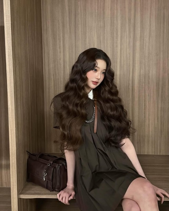 张元英在自己的SNS上发布消息:"Don't miss the Miu Miu FW26 show happening at 10PM KST on March 10. Shall we watch the show together??☕️",表达了对3月10日即将举行的时装秀的期待。同时公开了一张搭配了棕色连衣裙和白色领子的时尚照片,营造出高雅的氛围。照片中的张元英自然披散着长波浪发,一只手轻触头发或托着下巴,露出若有所思的表情,展现出优雅的气质。
