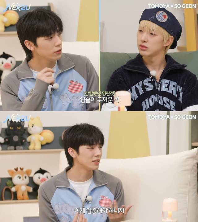 在 16 日公开的原创内容《NEX2U》第 8 集中,队长 TOMOYA 和成员 SO GEON 出演,从试镜时期的回忆到出道后的烦恼,进行了坦诚的交流。