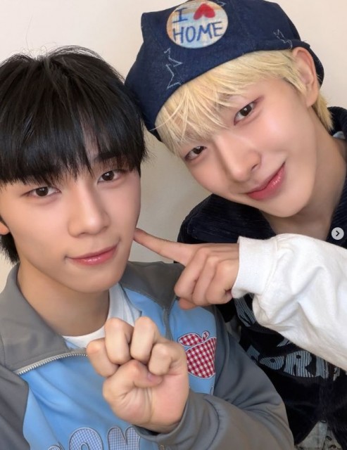 在公开的照片中,金发的智哉戴着蓝色贝雷帽,用手指轻轻戳着苏建的脸颊,摆出所谓的“戳脸杀”姿势,并露出了灿烂的笑容。站在一旁的苏建则俏皮地握紧拳头凝视镜头,营造出温馨的氛围。两人截然不同的魅力交织在一起,这张照片一经公开便在粉丝中引发了热议。