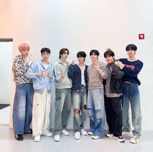 照片中,n.SSign 成员们以白墙为背景,展示了各具特色的时尚休闲装。成员们身穿牛仔裤、开衫、连帽卫衣等单品,营造出舒适而又不失酷炫的氛围,并摆出手指爱心和 V 字手势,展现了“撒娇满分”的粉丝服务。成员间紧密的默契配合加上七人七色的耀眼颜值,瞬间抓住了观众的视线。
